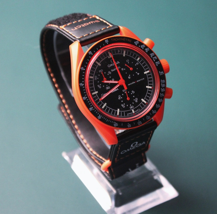 نسخه خاص و متفاوت کالکشن مشترک امگا × سواچ با طراحی الهامگرفته از زمین و جریان گدازههای آتشفشانی، دارای صفحه قرمز و نارنجی چشمنواز 🌋🌍